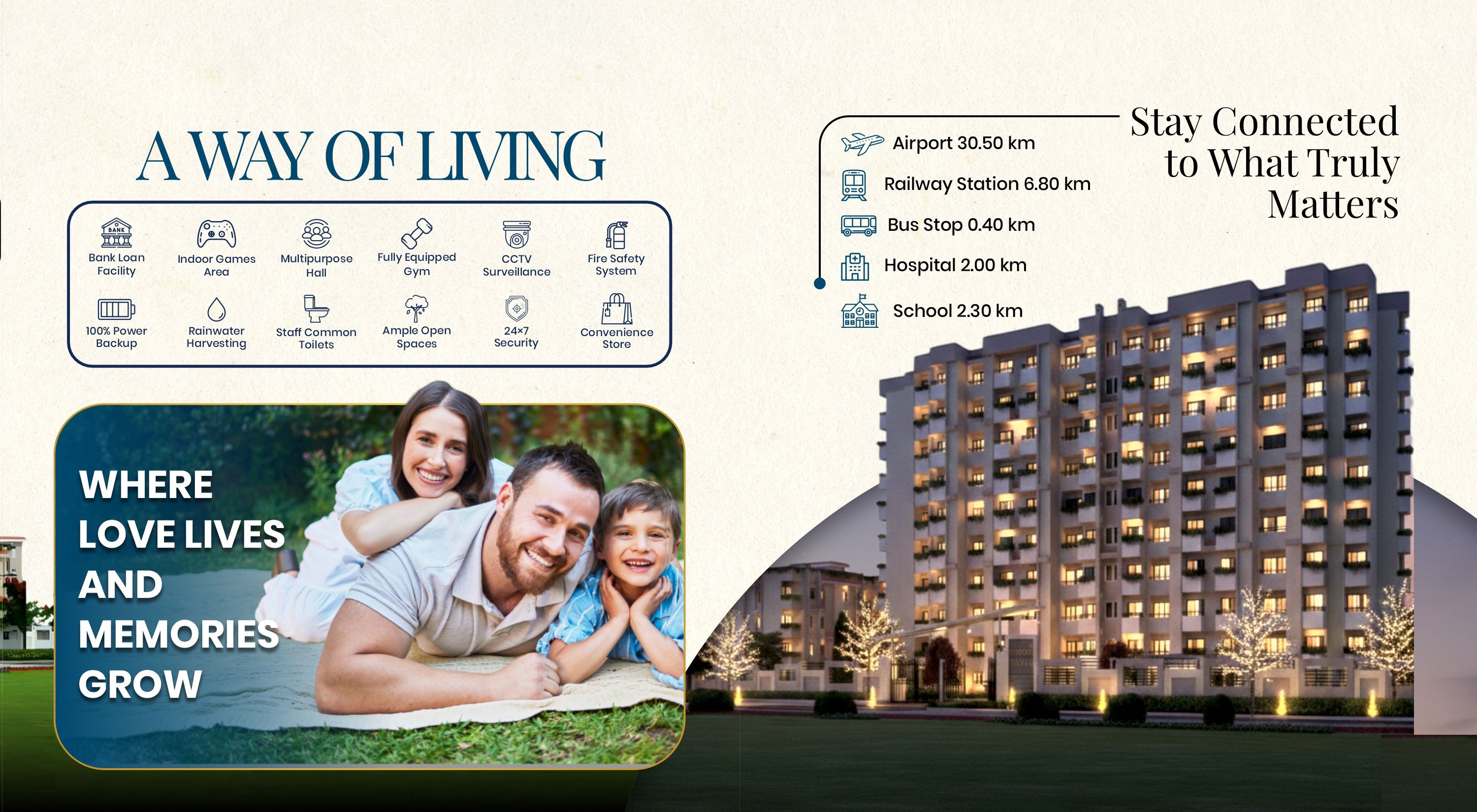 A landmark residential project with 479 units of 1, 2 & 3 BHK flats, offering modern amenities, ample parking, and lush green surroundings within 20 minutes of the city.